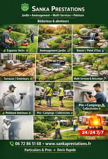 Sanka Prestations a véritablement métamorphosé mon jardin, en lui apportant une touche d'esthétisme et de fonctionnalité. Dès le premier contact, j'ai été impressionné par le professionnalisme de l'équipe, qui a su écouter mes désirs et proposer des solutions personnalisées. Le service offert était non seulement exceptionnel, mais chaque membre du personnel a fait preuve d'un engagement et d'une passion évidente pour son métier. Grâce à leur expertise, mon espace extérieur est devenu un véritable havre de paix où je peux me détendre et profiter de la nature. Je recommande vivement Sanka Prestations à tous ceux qui souhaitent embellir leur jardin et bénéficier d'un service de qualité. Leur savoir-faire et leur attention aux détails font toute la différence.